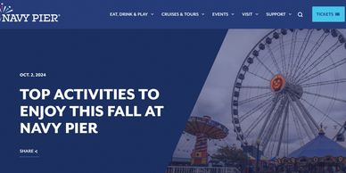 In writing "Top Activities to Enjoy This Fall at Navy Pier," I aimed to spotlight the variety of experiences the Pier offers during the autumn months. With the changing seasons, Navy Pier becomes a vibrant destination, offering something for everyone—whether you're visiting to enjoy the crisp air, cozy up with fall treats, or take in the seasonal sights and sounds.